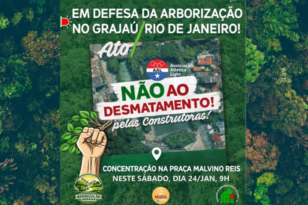 Moradores do Grajaú, na Zona Norte do Rio de Janeiro, promovem neste sábado, 24 de janeiro, uma mobilização contra a derrubada de 55 árvores no terreno onde funcionava o tradicional Clube da Light, situado na Rua Barão do Bom Retiro, nº 2002. A manifestação foi convocada pela Associação de Moradores e Amigos do Grajaú (AMAGRAJA) e está marcada para as 9h, com concentração na Praça Malvino Reis. A partir dali, os participantes seguirão em caminhada até o estande de vendas do condomínio que está sendo construído no local.